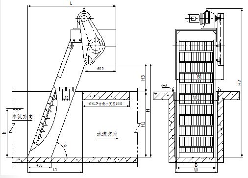 本機器是可根據不同的污水特性,可選擇“耙齒結構”或“刷條結構”或“網板階梯”等撈毛部件拼裝成回轉形式。在電機減速器的驅動下實現回轉運動,從而將流體中的雜質撈出。當撈毛部件運轉到本機的上部時,由于槽輪和彎軌的水平導向,使撈毛部件截留的固體物質脫落。